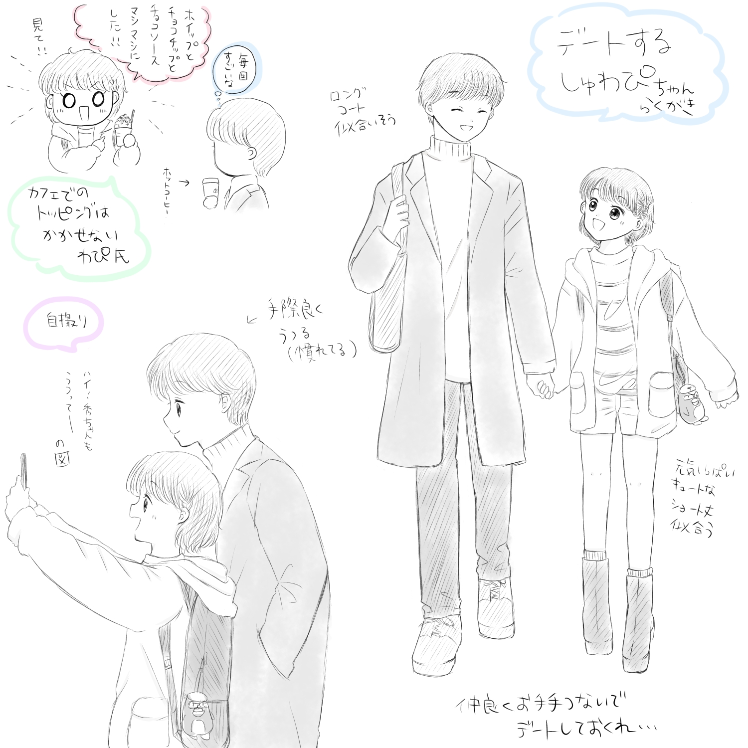 ちーちゃんにとってあの3人は心許せるかけがえのない友達だったら良いなぁって・・環境の所為もあって、人一倍強がりで甘え下手なちーちゃんの事を3人はいつも心配しているのではなかろうかという妄想が爆発してる落書き(わぴ秀居ないけど)